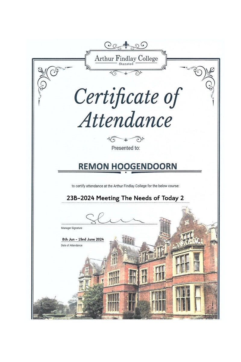 Ik blijf mij door trainen, ook nadat ik de opleiding heb afgerond. Ik ben klaar om verder te studeren aan de hogeschool en universiteit The Arthur Findlay College in Londen Stansted. Het is belangrijk in dit vak je voortdurend te ontwikkelen. Daarvoor is toewijding en training nodig. Een topsporter is ook nooit klaar en heeft zijn trainingen nodig om op hoog niveau te kunnen blijven presteren en zich te verbeteren. The Arthur Findlay College heeft meer dan 50 goedgekeurde docenten en naast hen, vele gespecialiseerde en gastdocenten. De docenten die les aan de universiteit geven. www.arthurfindlaycollege.org/tutor